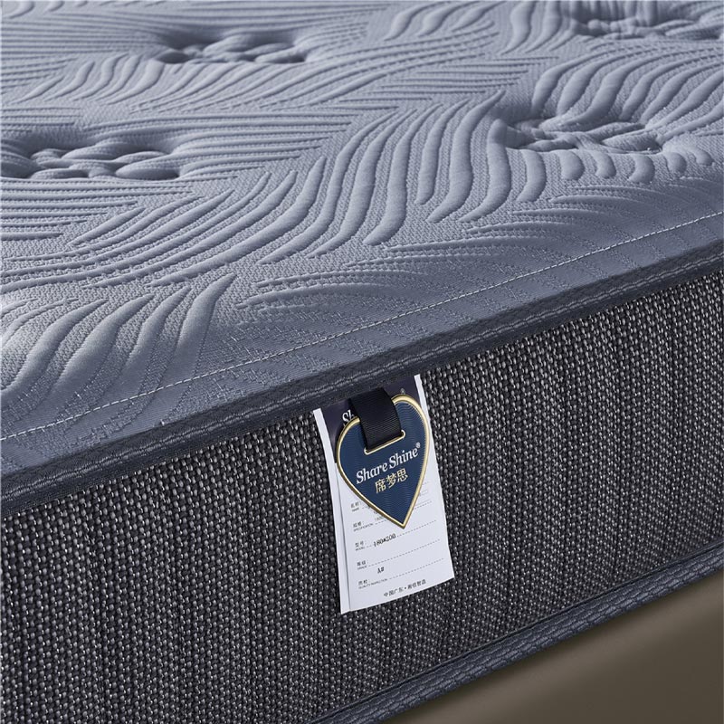 எங்களின் உயர்தர உயர் அடர்த்தி நுரை மற்றும் ஸ்பிரிங் ஹைப்ரிட் மெத்தை தயாரிப்புகளை மேம்படுத்தும் நேர்த்தியான மூலை லேபிள்களைக் கொண்டுள்ளது அங்கீகாரம் மற்றும் தர உணர்வு, குறிப்பாக பிராண்டட் ஹோட்டல் அறைகள் மற்றும் ஷோரூம் காட்சிகளுக்கு முக்கியமானது.